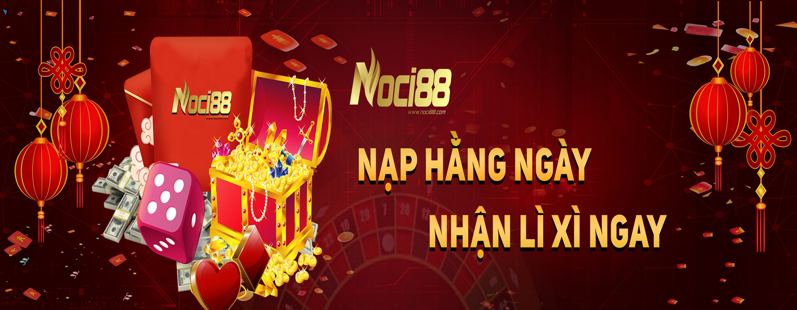 - Nhận Lì xì liền tay cho những thành viên nạp tiền hằng ngày Noci88. Sau mỗi ngày vào lúc 00:00 theo giờ GMT+8 Lì xì sẽ được làm mới lại 1 lần, tất cả các thành viên Nạp tiền sẽ được tính lại từ đầu